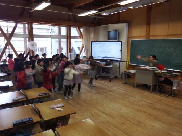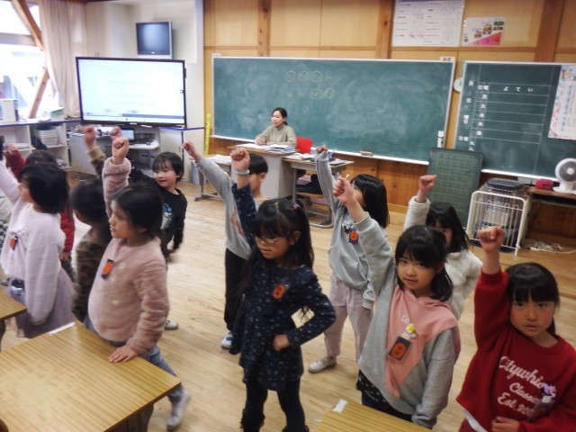1年生 6年生の卒業を祝う会に向けて練習しました!元気いっぱい楽しく活動できましたね。