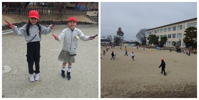 2時間目の放課「なかよしタイム」です。運動場で元気いっぱい遊びました♪ 空には雲が出てきました。今日は夕方から降雨の予報ですね。恵みの雨になるでしょうか!?