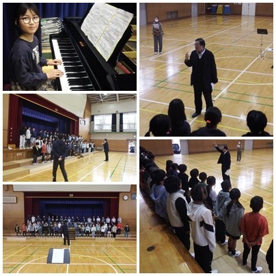 3年生 合唱「スマイルアゲイン」これまで練習してきた合唱曲「スマイルアゲイン」をさらに上達するために合唱指導者富澤先生に教えていただきます。3年生のパワーで豊かに歌い上げます♪