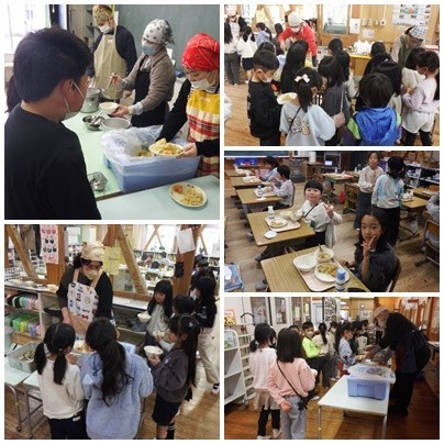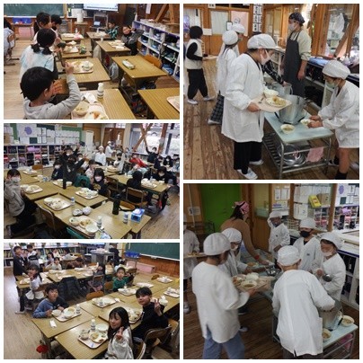 給食の時間になりました!今日はベトナム料理です♪楽しみですね!今日もみんなで協力して準備を進めています。