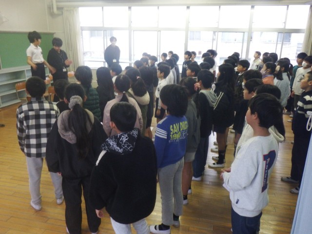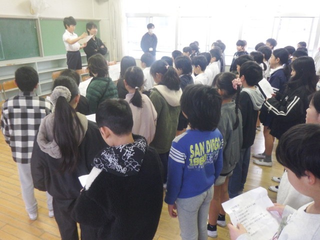 4年生 朝の時間に、6年生卒業を祝う会の練習を行いました。素晴らしい姿ですね!