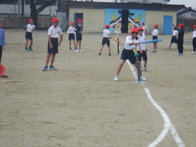 4年生 体育「ティーボール」運動場で活動しました!ヒットが打てると嬉しいですね!守備が上手くいくと嬉しいですね!チームワークをいかして頑張って取り組みました♪