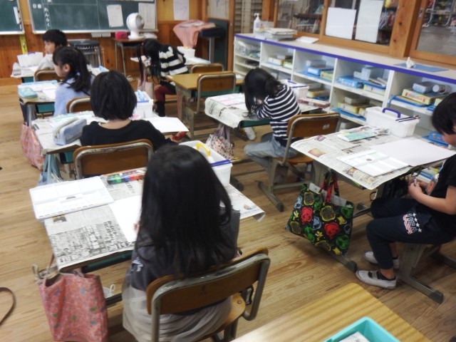 1年生 図画工作「1年生おもいでのえ」真っ白の画用紙に思い出を描いていきす。どんな思い出が描かれるかな?楽しみです♪