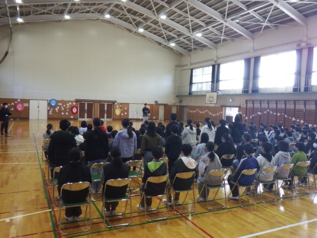 6年生 昨日の6年生卒業を祝う会の余韻そのままに、卒業式に向けた確認、練習を行いました。静寂に包まれた体育館の中で、卒業生らしい態度で臨んでいます。