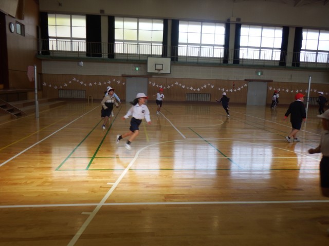 2年生 体育 体育館で活動行います。しっかり準備運動を行い活動を進めていきます!楽しく頑張っていきましょうね♪