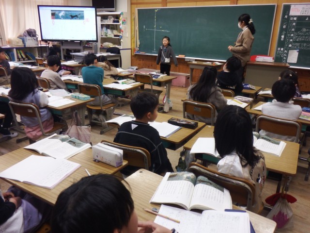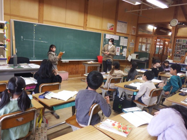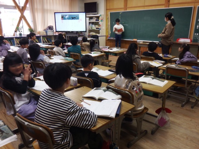 2年生 国語「スーホーの白い馬」課題場面の登場人物の気持ちを読解して発表しました。黒板に心情チャートを作り、級友の考えを共有しました。