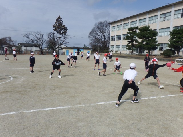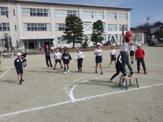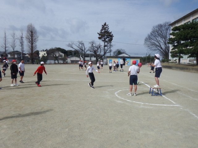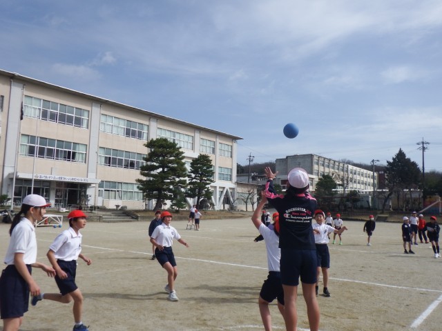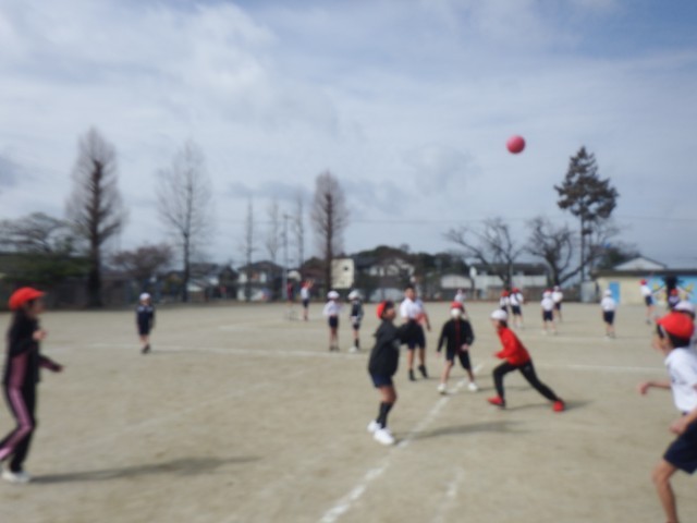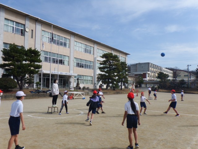 5年生 体育「ポートボール」運動場でポートボールを行いました。風がなく活動しやすいですね!チームワークを発揮し、白熱したゲームが展開されました!