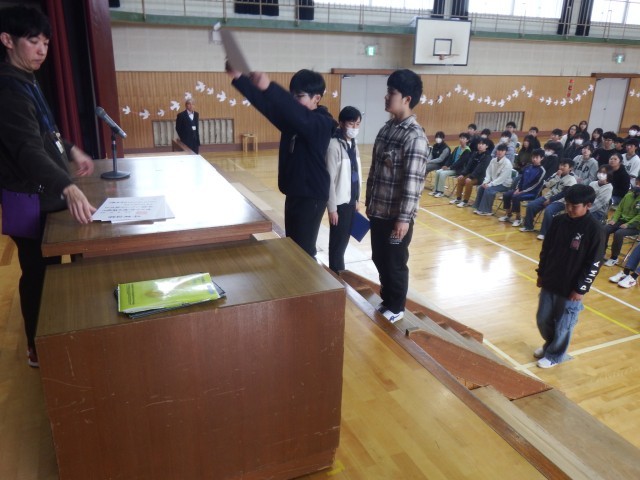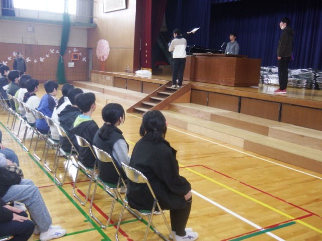 6年生 卒業式に向けて練習を行っています。今日は、卒業証書授与を中心に練習を行いました。