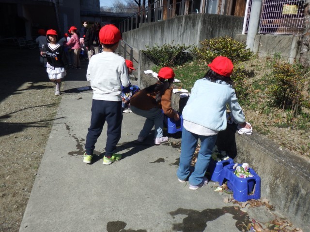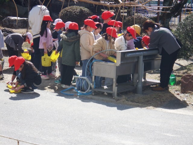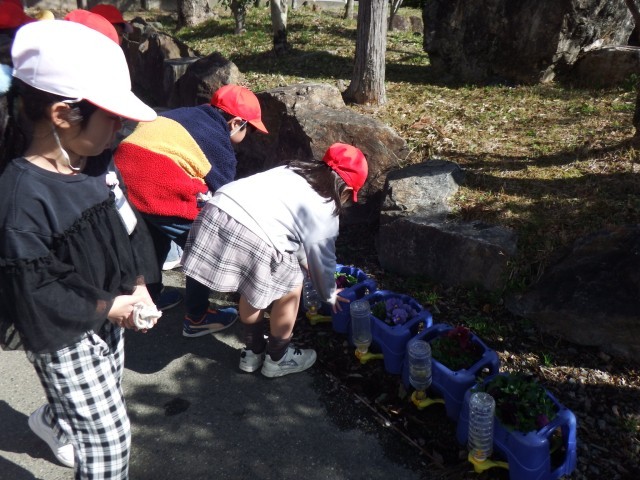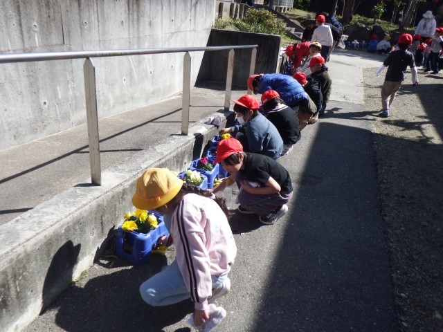 1年生 パンジーが綺麗に咲いています!うまく育ちましたね♪卒業生をお祝いするパンジーですね!