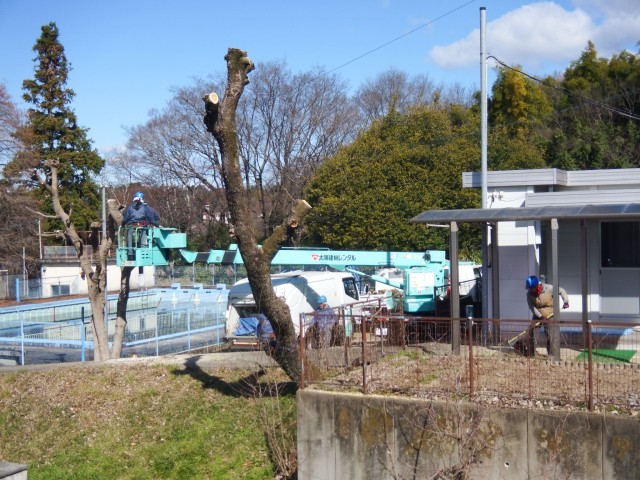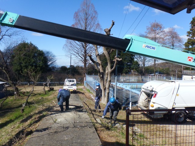 昨日に引き続き、校庭の木々の剪定作業を行っています。今日もよろしくお願いします!