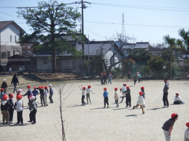 お昼の放課「のびのびタイム」です。太陽の日差しが綺麗ですね!運動場でしっかり遊ぶことができましたね♪