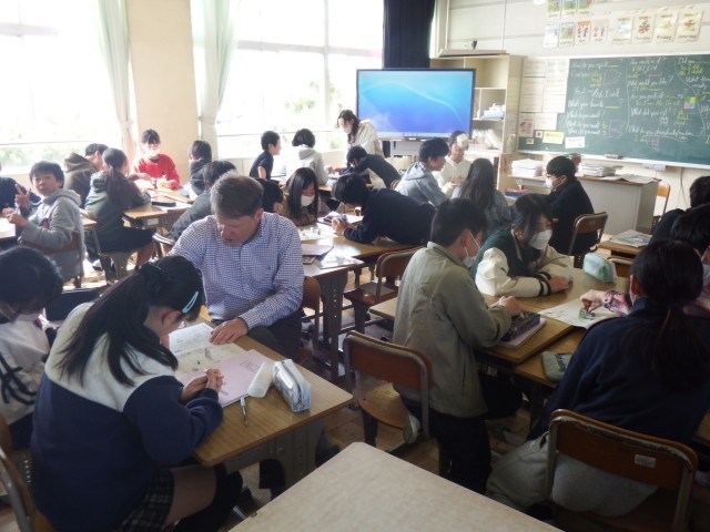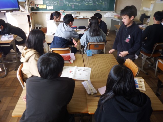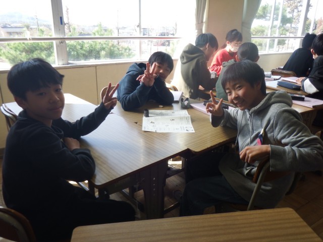 6年生 外国語活動 学習のふりかえりをゲーム形式で行いました。サイコロを振って、出た目の問題に英語で答えていきました。