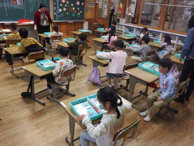 1年生 学級活動 落ち着いて朝の時間を過ごすことができました。今日は、身の回りの整理を行いました。