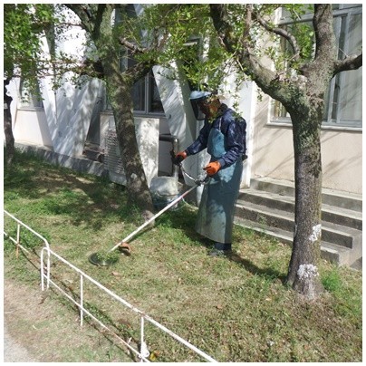 校内外の環境整備作業を力を合わせて進めています。今年も草がよく育っていますね。