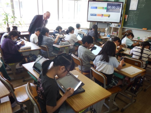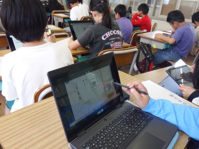 4年生 ラインズのICT授業です。新しいタブレットを活用して授業を進めています。タッチペンも導入され、さらなるスキルを身につけていきます。