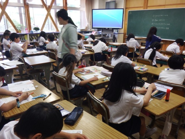 3年生 係活動や生活班が決まりました。今日は、検診を待つ間に掲示物作りを行いました。