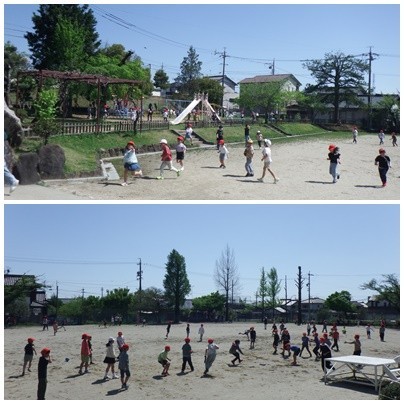 お昼の放課「のびのびタイム」です。気温があがってきましたね!運動場で元気いっぱい遊ぶことができました♪
