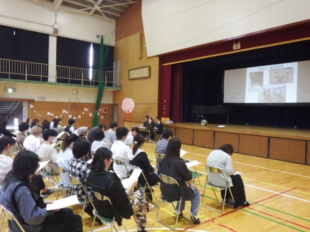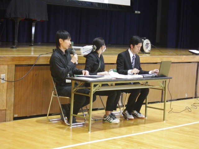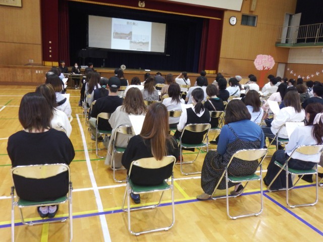 5年生 体育館で自然教室の説明会を行っています。ご多用の中、ご参加いただきありがとうございます。