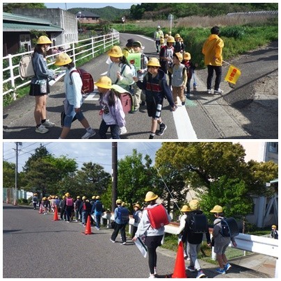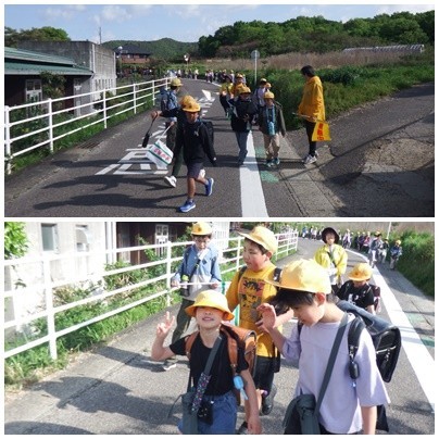 おはようございます。元気に児童が登校しました。地域の皆さま、保護者の皆さま、日々見守り活動ありがとうございます。また、送り迎えの際、岩田グランドをご活用いただきありがとうございます。体育館周辺、正門周辺、路上への駐車はご遠慮ください。学校間道路をお車で走行の際は、児童生徒の通行に十分に配慮をお願いします。