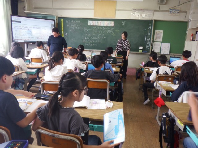 4年生 算数「一億をこえる数」位をよくみて、分かることをみるけて考えていきました。時折、タブレットを活用して学びを広げていきました。
