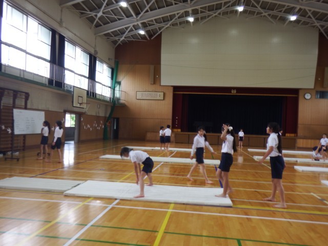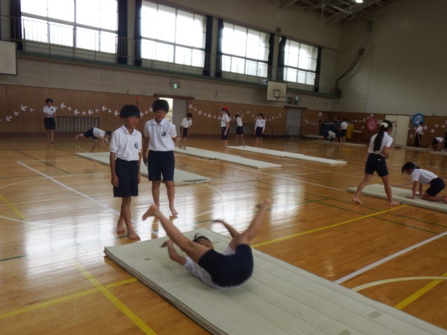 6年生 体育「マット運動」体育館で活動行いました。自らの技を高めるために、一生懸命に練習に取り組むことができました。