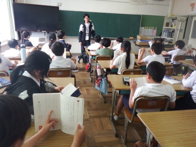 5年生 国語「詩を楽しもう」かんがえるのって おもしろい 谷川俊太郎 教科書の本文を読み込みました。音読してえがかれていることを想像することができました。