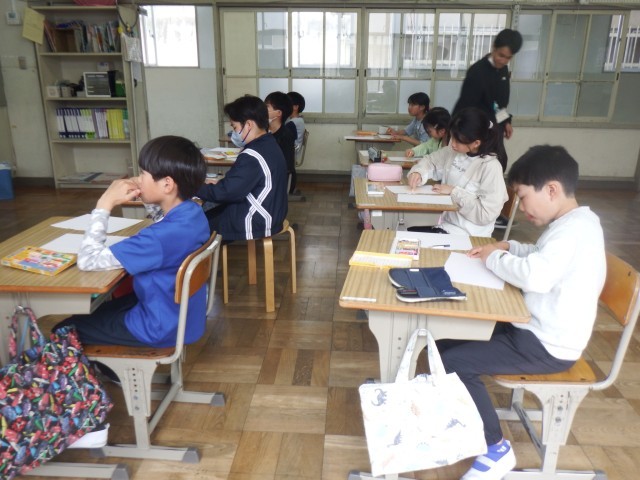 5年生 自然教室に向けての学年集会、聴力検査を終えて、学級で学習を進めています。落ち着いて頑張って取り組んでいます!