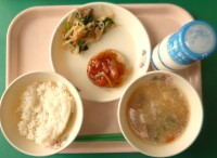 煮込みハンバーグはデミグラスソースとケチャップを合わせたソースをかけて給食室のオーブンで煮込みました。