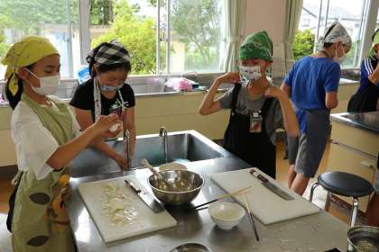 「いただきます。」の後は,みんな笑顔で会食し,野菜が苦手だという児童もペロリと食べることができました。やはり自分たちで調理をすると,何でも美味しく感じるようです。