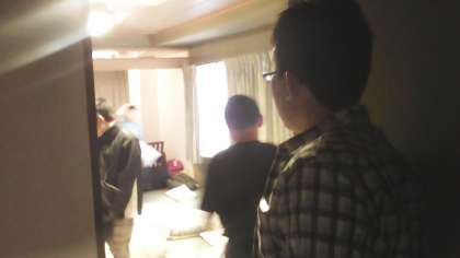 眠い中、みんなで布団たたみ