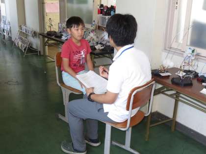 担任の先生が一人一人の児童と向き合い,じっくりと話を聞いています。