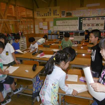 この日は、いろんな友達に得意なものや好きなものなどをインタビューする「友達発見インタビュー」をしました。友達の意外な一面が発見できたようです。