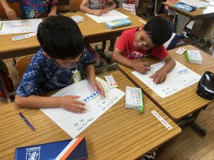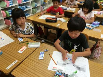 「あわせて」をお話しながらブロックを動かせるようになることが最初のめあてです。