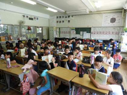 お昼休みのペア読書では,4年生が3年生の教室で,練習してきた物語を読んでくれました。