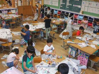 図画工作「しんぶんしとなかよし」【2年生】