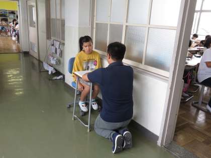 教育相談週間ということで,朝読書の時間を利用して,担任が一人一人の児童と順番に面談を行っています。普段の生活の様子や,学習の進み具合,抱えている悩みなどについて話し合い,これからのことについて確認をしているところです。