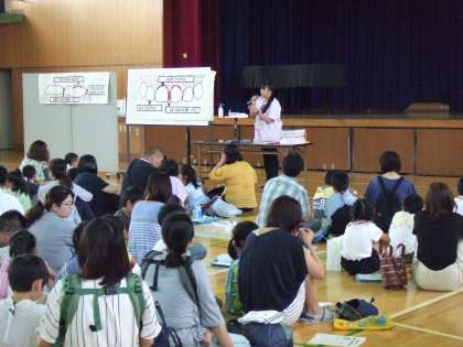 歯を磨くことの大切さや、歯の磨き方を丁寧に教えていただきました。日頃から口を閉じることは物事を集中するにも運動する上でも関わっているというお話を聞くことができ、口の体操「い・ぬ・や・ま・べー」も教えていただき、とてもためになりました。