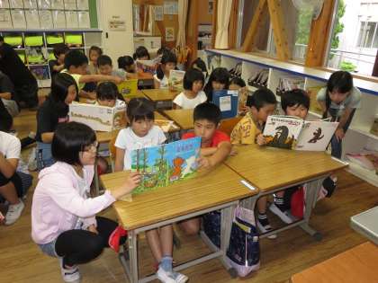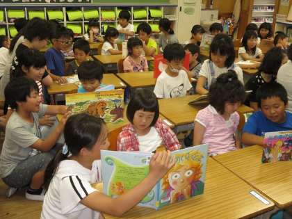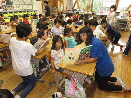 金曜日に,1・6年生のペア読書がありました。6年生はみんな真剣な表情で,1年生のペアの児童に絵本を読み聞かせていました。事前に借りて音読の練習もしていたので,みんな上手に読むことができました。