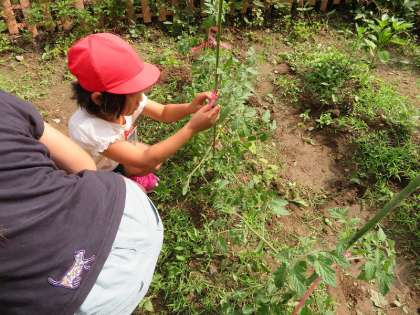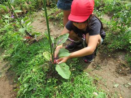 学年の畑でもお世話をしました。草を抜いたり、支柱を立てたり、お世話をしました。ナスやミニトマト、ピーマンの実がなっている事をうれしそうに教えてくれたり、黙々と草を抜いたり、みんな一生懸命活動していました。