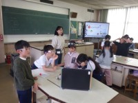 「まだまだきれいにし足りないから放課の時間も掃除したい」という子がたくさんいました。ここまでの3か月の間についた足跡などの汚れを一生懸命磨いています。