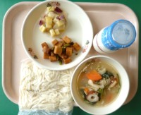野菜などを具だくさんにして汁が多めの献立にしています。