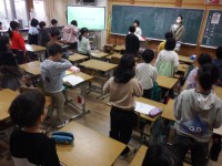 校舎の中をまわって、消防施設がどこに設置されているのか地図にまとめました。廊下には消化器やホースの入った消火栓が設置されている、階段には防火扉や防火シャッターがある、天井には煙や熱を探知して知らせてくれる装置がついていることが分かりました。