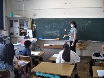 6年生は、少人数授業で算数を学習していました。分数÷分数の計算方法を一生懸命に考えていました。中学校に向けて、学習内容はどんどん難しくなりますね。がんばれ6年生。