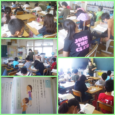 5年生は、「日常を十七音で」の学習をしていました。日常の出来事を俳句にするために、今日は材料集めです。日々の出来事をノートに書き出していました。「昨日、食べたスーパーカップアイスがとてもおいしかった。」「ゴキブリを発見して驚いた」などなど。さて、どのような俳句に仕上がるのか。楽しみですね。