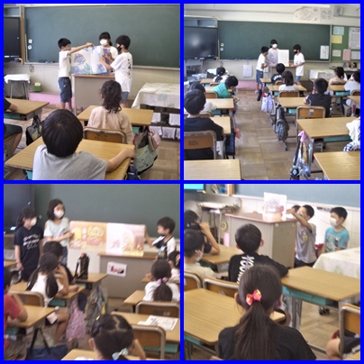 今日の昼放課は、3年生の教室で図書委員が紙芝居を上演しました。3年生はみんな真剣に聞き入っています。最後に、紙芝居の感想を発表する子もいました。図書委員の子も、今日までに練習を積み重ねてきたことでしょう。紙芝居を読み終えたとき、「緊張して汗がびしょびしょです。」と言う子がいました。図書委員のみなさん、よく頑張りました。