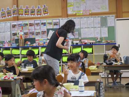 かおりちゃんはみんなが残さず食べるように、時々来てくれます。