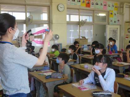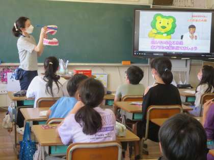 今年はコロナウイルスの影響を配慮して歯ブラシは使用せず、DVDの動画教材を視聴しながら学びました。