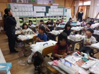 1年生の教室から、デイビット先生の大きな声と子どもたちの明るい笑い声が聞こえてきました。今日の英語の授業では、クリスマスの飾りを作りながら、楽しく英語に親しむことができました。