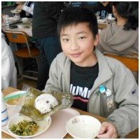 今日は、子どもたちが大好きな麺類の献立です。具だくさんのカレー汁の中に白玉うどんを入れていただきました。揚げたこ焼きは、外はカリッとしていますが、中はトロリと柔らかいたこ焼きでした。