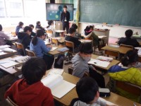 4年生から高学年図書館を利用できるようになり、図書館司書の先生にオリエンテーションをしていただきました。本が10に分類されていることや、百科事典の使い方などについて教わりました。